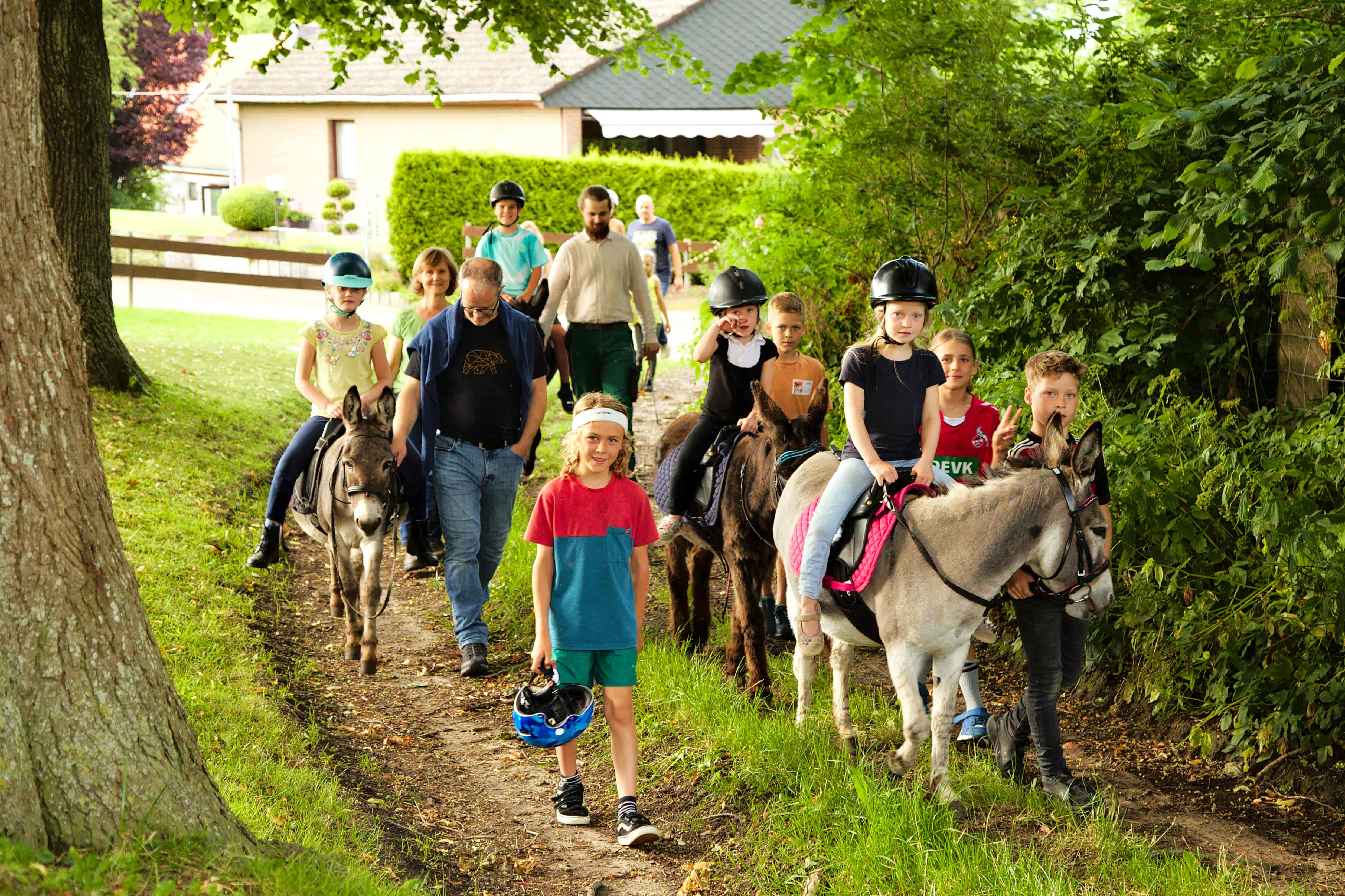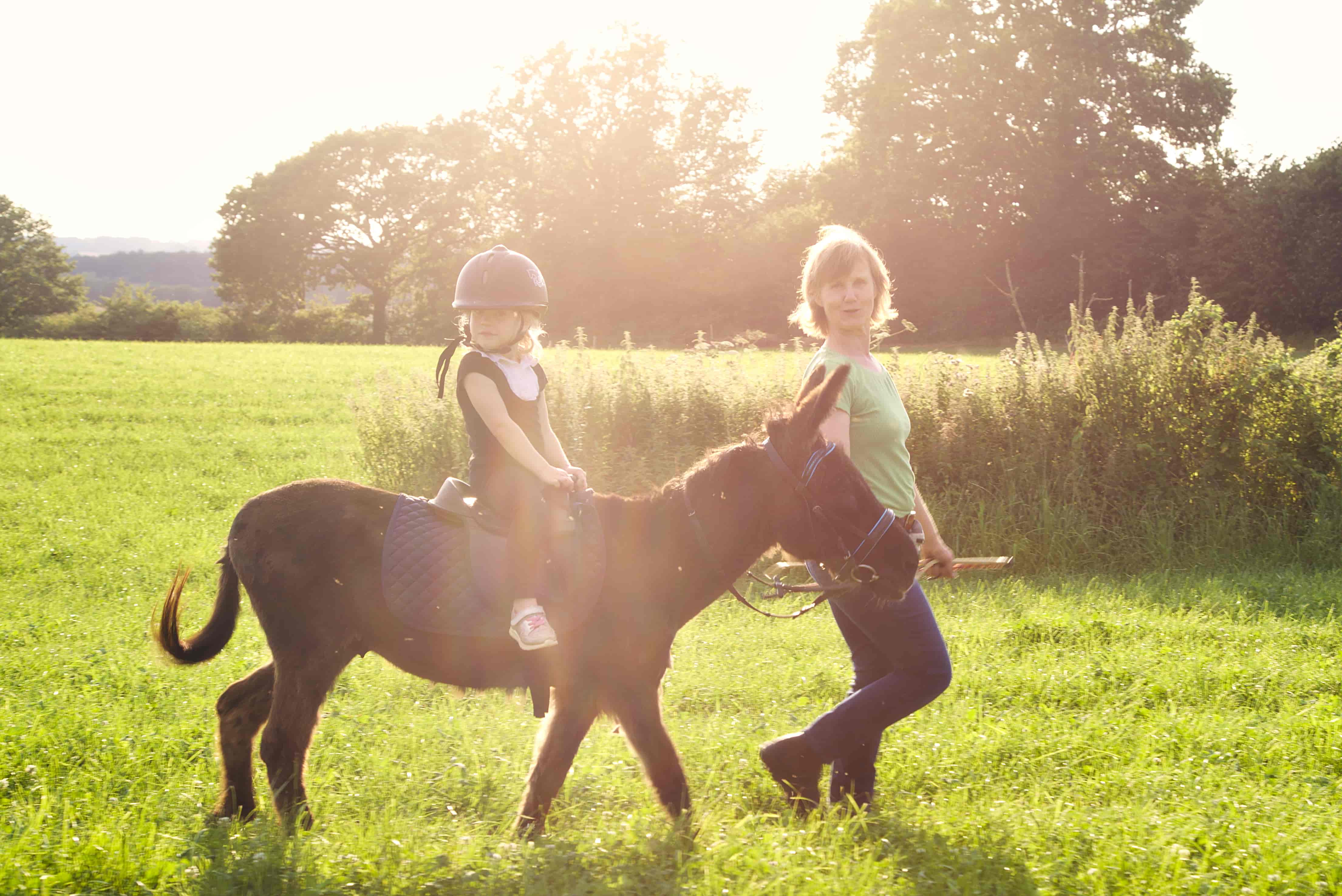Auch zusammen können Ihre Kinder auf unseren Eseln reiten und mit Ihnen die Natur genießen.